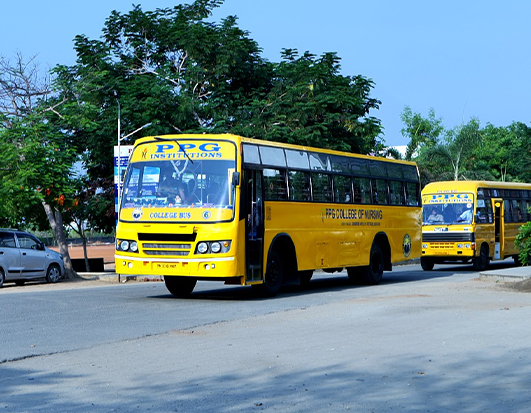 The college has bus transport for students coming from in and around the city. The busses routing includes Coimbatore City, Mettupalayam, Sathyamangalam, Avinashi, Sirumugai, Puliampatti etc. Separate transport identification card will be issued to all students coming through college bus. Strict Government transportation norms will be followed in running the college busses.